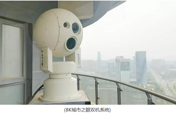 “8K城市之眼”是全國唯一將8K攝像機和高倍高清攝像機雙機集成的一體化設備,廣角8K攝像機具有超大視野和8K分辨率,呈現(xiàn)出清晰的大場景畫面,長焦高倍高清攝像機則注重大場景中某些細節(jié)的近距離呈現(xiàn),實現(xiàn)了城市風景“既看得全,又看得清”的核心訴求。